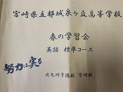 3月に毎年行われている学習会ですが、今年は3月3日(日)に南九州大学で行われました。高校1・2年生の理数科生と、普通科と3Aの希望者が標準コースと応用コースに分かれて学習しました。北九州予備校の先生方が熱く、わかりやすく講義してくださり、この日だけでかなり前進できた手応えを感じた生徒が多かったようです。予習として取り組むことになっていた課題も、レベルが高いものだったようですが、講師の先生方が長年の経験で得たコツやアドバイスを教えてくださり、考えていくヒントをもらったようでした。