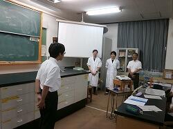 生徒の前で色素を抽出する実験も見せていただき,生徒たちは興味深そうに見ていました。