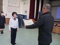 先週行われた学級討議・四者会・中央清泉会を経て、1月25日(木)7時間目に清泉会集会が開かれました。今年度開かれる集会も残り少なくなってきました。日常の取組としては今年度最後となる旬間が始まります。旬間の目標達成を目指し、各委員長から発表された具体的対策に全員で主体的に取り組んでいきたいものです。また、今回の集会では、3学期に行われる「立志式」「卒業式」などを見据えて、挨拶や礼などをしっかりできるように、みんなで練習しました。保体清泉会の保健委員を代表して3年の宮原瑛太さんと松葉理桜さんからは、3月8日(金)に実施予定の「お弁当の日」についてのお知らせや紹介がありました。集会後に表彰・紹介も行われました。今回表彰・紹介されたのは以下のとおりです。