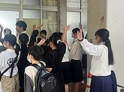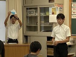 10月19日(土)第2回学校説明会の日。朝から怪しい空模様でしたが、参加者の皆さんがちょうど到着する頃から雷とともに激しい雨が降り出しました。駐車場の足場も悪く、会場となった義友会館までにずいぶん濡れてしまった方も多かったのではないでしょうか。このように悪天候の中ではありましたが、ほぼ全ての参加希望者の方に出席いただきました。ありがとうございました。説明会の全体会では、校長先生の話の後、本校1年生が中心となって、C-time、キャリア探究、自然科学探究、各部活動を紹介していきました。生徒たち自身がそれぞれプレゼンテーション画面を作り、説明の言葉も考えて練習を重ねた発表は、いかがだったでしょうか。部活動紹介ではユニフォームや練習着を着て紹介する部活動もあり、「ぜひ入ってください」の呼びかけが多くありました。その後、小学生の皆さんには本校2年生が六つのグループに分かれ校内施設案内をしました。ちょうどその頃、激しかった雨も止み、校内見学を無事行うことができました。保護者の皆様は、そのまま残っていただき、学校の方から選抜検査関係の説明を行いました。その後、六つの場所に分かれて本年度初めて取り組むミニ体験授業を行いました。この授業は本校3年生が中心となって準備を全て行ってきた内容で、この日は先生役となって授業を進めていきました。折り紙を使った面白い授業内容で、小学生の皆さんもとても楽しそうに授業に臨んでいました。土曜の午前中という貴重な時間を割いて、参加いただいた全ての皆様に感謝申し上げます。本校生徒たちも、この説明会を準備し実行していく中で、多くを学び、成長できたと思います。ありがとうございました。
