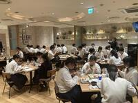 5月15日(水)、修学旅行中の3年生は、パナソニックセンター東京を後にして、夕食へと向かいました。赤坂のレストランでは、今回の旅行で唯一のビュッフェスタイルの食事となりました。レストランにはバスを降りて5分ほど歩くのですが、繁華街にあり、遅れず着いていくのにみんな一生懸命でした。レストランで着席し説明を受けた後、前畑さんの号令で「いただきます」。早速料理を取っていきます。野菜多めの人、炭水化物大好きな人、茶色いものが好きな人、いろいろですが、みんな楽しそうです。お腹いっぱい食べて、黒葛原さんの号令で「ごちそうさま」。美味しかったレストランを後に、ホテルへと向かいました。帰り道、雨模様でしたが、天気予報では明日はあがるとのこと。明日、天気になぁれ。