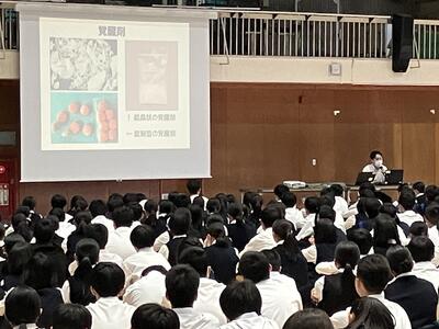 5月8日(水)7時間目に、「交通安全教室・薬物乱用防止教室」がありました。体育館で中高生一緒に学ぶ機会となりました。講師としておいでくださったのは、都城警察署の方々です。最初に、「薬物乱用防止教室」が行われました。動画等を視聴し、特に昨今若い世代に広がる薬物について学ぶことができました。一見薬物とは思えないようなものも多々あり、本当に気をつけなければならないと感じました。続いて行われたのは「交通安全教室」。幼いころから何度も交通安全については考えたり学んだりしてきたと思いますが、機会ある度に交通安全を守ることの大切さを意識し続けていかなければなりません。今回も、映像資料やお話から、交通安全を守っていこうと改めて感じました。本校には遠くから自転車で通学する生徒もいます。自転車を安全に運転することを気をつけていきたいものです。お忙しい中、講師を務めてくださった都城警察署の方々に心からお礼申し上げます。ありがとうございました。