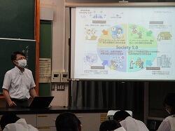 6月16日(木)5・6時間目に、1年生の自然科学探究の出前授業が行われました。テーマは「身近な環境問題」。講師としておいでくださったのは、宮崎大学教育学部教授の秋山博臣先生です。