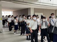 学校から歩いてくるので、生徒はちょっとした遠足気分。みんな楽しそうです。
