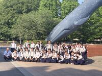 1日目の後半です。東京国立博物館から歩いてすぐのところにある国立科学博物館に行きましたが、ここもとても広く、サイエンス好きには1時間30分では全然足りないほど見応え十分の博物館でした。その後、バスに乗って宿泊ホテルに到着。1万歩以上歩いたのでお腹も空いたことでしょう。夕食を美味しそうに食べていました。みんな元気に1日目が無事終了です。明日は今日以上に暑くなりそうですが、明日もみんな元気で楽しんでくれますように!
