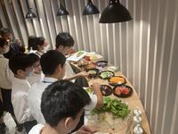 5月15日(水)、修学旅行中の3年生は、パナソニックセンター東京を後にして、夕食へと向かいました。赤坂のレストランでは、今回の旅行で唯一のビュッフェスタイルの食事となりました。レストランにはバスを降りて5分ほど歩くのですが、繁華街にあり、遅れず着いていくのにみんな一生懸命でした。レストランで着席し説明を受けた後、前畑さんの号令で「いただきます」。早速料理を取っていきます。野菜多めの人、炭水化物大好きな人、茶色いものが好きな人、いろいろですが、みんな楽しそうです。お腹いっぱい食べて、黒葛原さんの号令で「ごちそうさま」。美味しかったレストランを後に、ホテルへと向かいました。帰り道、雨模様でしたが、天気予報では明日はあがるとのこと。明日、天気になぁれ。