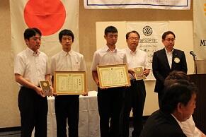 平成29年9月8日(金)に都城ロータリークラブ主催の優良青少年生徒表彰状授与式が行われました。本校からは、川田理栄仁くん(3年生)が学級や中学校全体への日頃の貢献が認められ、受賞しました。式では、川田くんが感謝の気持ちと今後の決意を発表してくれました。