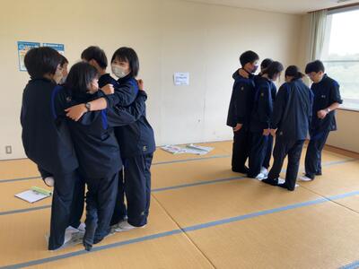 4月21日(金)、集団宿泊体験学習3日目。イニシアティブゲームの後には防災活動に取り組みました。今回は煙ハウスを一人一人が通り抜けていくという活動をしました。「中が全然見えない」との感想が相次ぎ、煙の恐ろしさを体感できたようです。いよいよ終わりが近づいてきました。3日間の体験を振り返ります。活動班・宿泊班に分かれて班としての振り返りを行いました。3日間での変化や成長について考えて伝え合うことで共有していきます。こうした活動を重ねながら、よりよい集団を作り上げていくことになります。御池でいただく最後の食事となったこの日の昼食もみんな完食しました。食後には食事係リーダーの川内芽衣子さんが代表して厨房の方々にお礼を言い、みんなで挨拶しました。3日間、おいしい食事をありがとうございました。午後は個別にしおりの記入を行ったり感想をまとめたりと、個別に振り返りを行いました。