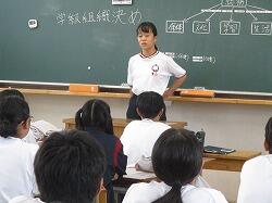 落ち着かない台風のため日々天気予報は変わり、周囲の状況を鑑みて順延になった都泉祭体育の部。そのため、都泉祭の間に1日の中休みの日が生まれました。9月5日(火)は、午前中3時間の授業、そして午後は主に団活動の練習が行われました。午前中は2時間目は中学校合同体育で、アトラクションの総仕上げ等を行いました。3時間目は、当初都泉祭後に予定していた学級活動での後期役員に向けての話し合いの時間がもたれました。本校は、学級役員・係活動は前後期制で、10月からは後期役員の活動期間となります。また、清泉会執行部も、3年生から2年生へと中心を移し、3年生のサポートの下、2年生が主に活動を推進していくことになります。いろいろな意味で、変化と成長の時期、ということです。