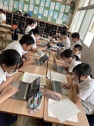 2年生が都泉祭準備期間から並行して続けてきた「キャリアチャレンジデイ2023 On-lineMeets」の準備も、いよいよ最終段階です。9月13日(水)・14日(木)と2日続けて質問事項のまとめと、事前確認を行いました。生徒たちは講師として参加くださる四つの企業の授業(阪急阪神ホールディングス・野村ホールディングス・住友ファーマ・大手化学関係)に4班に分かれて参加し、5時間目に一つの企業、6時間目にもう一つの企業のお話を聞くことになります。ですから、ひと教室に10名程度で二つの企業のお話を聞けるという贅沢な授業となります。さらに奈良県と栃木県の中学校からも参加しますので、オンラインで全国が繫がる大規模な授業です。最終確認では、質問事項や質問の仕方、位置取りなど、細かく確認をしていました。9月15日(金)5・6時間目に行われる授業が楽しみです。