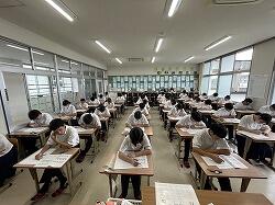 9月12日(火)~14日(木)に本年度の学力推移調査が2年生・3年生のふた学年で行われました。これは、全国の中高一貫校で希望する学校が参加する学力調査の一つで、国語・数学・英語の3教科で行われます。本校では自分自身の学力状況を把握し、学習に活かしていくために継続的に参加しています。やや難易度が高いとあって、生徒たちは45分のテスト時間をめいっぱい使って、一生懸命取り組んでいました。今後、1月に1年生~3年生の3学年で調査を受ける予定です。なお、1月の3年生の調査は、1教科60分での実施となります。