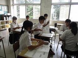 9月から、本校では県教育委員会の先生方が授業を見に来られ、授業づくりについて話し合って更によりよくしようという、「支援訪問授業」が始まっています。9月13日(水)は3年生で国語の授業、そして9月20日(水)には1年生で数学の授業が行われました。1年生「一次不等式」の授業では、「クラス代表を選挙で選ぶとき」という身近な場面を設定し、一次不等式を活用して解決に導くことができることを個人やグループで主体的・積極的に考えたり話し合ったりしながら学んでいました。今後、10月~12月にかけて、他の教科の支援訪問授業が行われます。先生方も一生懸命勉強しています。