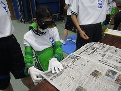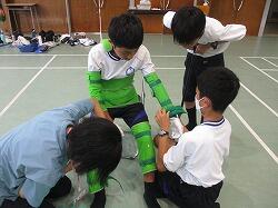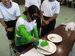 9月20日(水)5・6時間目に1年生は「福祉体験教育活動」の2回目となる「高齢者擬似体験」に臨みました。今回講師としておいでいただいたのは、都城医療センター附属看護学校の5名の先生方です。前回の福祉講話で、「ふだんのくらしをしあわせに」という言葉を学びましたが、今回の体験では、まさに高齢者の日常生活を擬似体験できる貴重な機会となりました。「高齢者の特徴を知る。」「高齢者との生活をイメージできる」という目標の下、四つのグループに分かれて、順番に体に装具をつけ、手袋をつけ、重りをつけ、ゴーグルをかけ、さまざまな日常の活動を行っていきます。「見えない。」「上手く動かせない。」「歩けない。」「起き上がれない。」など、あちらこちらから声が聞こえます。高齢者の特徴を身をもって理解できたのではないでしょうか。また、相手に思いやりの心をもちさりげない気遣いをしていくことがとても大切であることも学ぶことができました。高齢者との関わりで配慮したいこととして、①落ち着いた穏やかな雰囲気づくり ②相手のペースに合わせる ③言葉や文章を選ぶ ④相手の自尊心を傷つけない といったことを教えていただきました。これからの福祉教育体験活動や日常の生活で活かしていけることばかりでした。また、生徒たちは準備や片付けをみんなで協力して積極的に行っていました。最後に生徒を代表して川﨑隆生さんがお礼の言葉を述べました。お忙しい中、多くの準備をしていただき講師を務めていただいた都城医療センター附属看護学校の先生方、本当にありがとうございました。