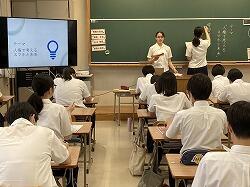 先日、1年生の「いのちの授業」の様子を紹介しましたが、6月27日(木)1時間目に3年生が生徒主体で進める「いのちの授業」を学級で行いました。テーマは全学年同じで「人権で考えるスマホと未来」。3年生らしく、自分たちの体験を踏まえながら話し合い発言する姿が見られました。1時間すべて生徒でつくりあげる授業は、生徒一人一人の主体的取組がより輝いて見えていたことは言うまでもありません。