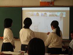 11月8日(金)午後の時間は、3年生は総合的な学習の時間「デザイン思考で考える富士通SDGsプログラム」オンライン授業の本番に臨みました。場所は、定時制の3教室をお借りして実施しました。10月末からこの授業に向けて着々と準備してきた3年生。「サービス(小売り)」「共生(情報)」「まち(交通)」の三つのソリューションテーマに分かれ、富士通からのミッション「『スーパーの店長』が『お客様に喜ばれ、いつまでも愛されるお店づくりをする』(サービス)」「『駅員』が『あらゆる乗客が安心してりようできるようにする』(共生)」「『交通が不便なまちに住む人』が『行きたい場所に移動する』(まち)」に対するアイデアを提案していきます。このアイデアを練り上げるのに、班会議、合同会議で合意形成を重ね、模擬発表を経てこの日を迎えました。サービス班の本校のソリューションアイデアは、「食品ロス、作業の負担軽減~賞味期限間近割引のポップを置き客自身が確認し自己申告」。発表者は黒木澪さんと中村桜之介さん。共生班の提案は「アプリ・駅内タブレットの実現~アプリで遅延・空き状況・駅員呼び出しなどさまざまな機能を付帯、貸出・無断持ち出し防止・置き場所等考えて提案」。発表者は上村陽希さんと種子田壮志さん。まち班の提案は「ブルーマウンテンスカイライン~ロープウエイとドローンを使った乗り物開発、使い方も工夫」。発表者は瀬口佳蓮さんと中田希來さんと堀真広さん。中にはそのまま使えそうなポップを作って提示したり、分かりやすい絵を描いて解説したりと工夫にあふれた発表でした。どの班も富士通の方からお褒めの言葉をいただきました。また、本校に先立って発表した、兵庫県の中学校と福岡県の中学校も、アイデアにあふれたすばらしい発表で、オンラインで一緒に学ぶことができ本当に感謝します。最後に、「サービス」班では中原唯正さんが、「共生」班では黒葛原漣さんが、「まち」班では三重野泰雅さんが感想を述べました。3年生は今回の貴重な学びを、次の活動に活かし繋げていきます。次は本校のある「都城の『だったらいいな!』」を再び各班で考え、12月に予定されている市役所市議会訪問にもっていく予定です。実りある授業の時間を提供くださいました富士通株式会社の皆様、企画運営くださいましたキャリアリンクの皆様、本当にありがとうございました。また、教室を快く使わせていただきました定時制の皆様にも御礼申し上げます。