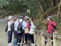 学校を出発し、御池にある野鳥の森に到着しました。天気は曇りです(雨が降らないことを願うばかりです)。これから高校1年生理数科の先輩達とグループになり、フィールドワークです。散策しながら「問い」をもち「仮説」を立てるミッションが与えられます。探究のプロセスを学ぶのが目的です。各班の担当職員はファシリテーターとして一緒に行動しますが口は出さず、生徒の主体性を育みます。