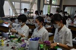 6月2日(水)6・7時間目に、本年度初めての出前授業が行われました。授業を受けたのは1年生。入学して初めて受ける出前授業に、心躍らせこの日を待っていました。講師として来校くださったのは、南九州大学環境園芸学部教授の山口雅篤先生です。「植物の色」についてのお話で、実際に植物を使って説明を聞いたり実験したりと、生徒たちはとても真剣に授業を受けていました。最後にお礼の言葉を東瑛太さんが代表して述べてくれました。お忙しい中、またコロナ禍において、生徒たちのために授業をしてくださった山口先生、派遣くださった南九州大学に、心からお礼申し上げます。ありがとうございました。