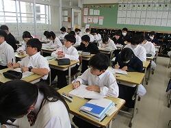 4月17日(火)7時間目、SET(SELF EDUCATION TIME)がありました。自ら課題をみつけ、自主的に学習に取り組む時間です。先生方も3学年のフロアを回ってこられていました。質問がある場合は積極的に臨みましょう。この日、3年生は近く行われる全国学習状況調査のダブレットを用いて答えるための準備も行っていました。