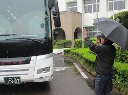 4月18日(木)朝、全員元気に顔をそろえた1年生は、40名で御池青少年自然の家に出発しました。朝のうちは雨が降っていましたが、天気予報によると好天に恵まれそうです。全員バスに乗り込み、見送りに出てくださった校長先生、高校の教頭先生、事務長、中学校職員に手を振って出発していきました。2日間の宿泊体験学習、学ぶことはたくさんあります。充実したもにになるよう、みんなで挑戦していきましょう!