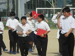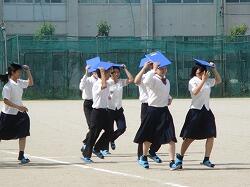6月5日(水)6時間目の終了間際。いきなり校内にあの独特のアラーム音と共に「緊急地震速報です……」と放送が入りました。「机の下などに身を隠し……」と続き、みんな第一次の防御姿勢を取りました。3分後、「揺れが収まりました。全員、頭を覆ってグラウンドに避難してください…」の放送が入り、みんなで一斉に避難を開始しました。実は、この日が防災避難訓練と予告せずに行った訓練でした。ですから、中学生も、1年生は美術の授業の最中、2年生・3年生は総合的な学習の時間で、2年生は大学の先生による出前授業が理科室で行われていました。必ずしも担任の先生がいて、場所は自分の教室で、という訳ではありませんでした。グラウンドに一番に走ってやってきたのは2年生。確かに理科室はグラウンドに近い場所です。しばらくして1年生がやってきました。中学生で最後にやってきたのは、グラウンドから一番遠い3A教室にいた3年生でした。グラウンドにやってきたらどの学年もすぐに整列し、人員点呼をして、報告していました。この日登校していた全校生徒が無事そろったところで、黒木教頭先生から「三つの助」についてお話がありました。東日本大震災、熊本地震、能登半島地震など、日本は地震の多い国の一つです。その中で「自助・公助・共助」という三つの助を大切にして、共にいのちを守っていこう、という考えが大切にされるようになりました。私たちも中学生として、高校生として、自分でできること、みんなでできることを考えながら生活していきたいものです。普段、どんな場面で天災に遭うか、それは分かりません。どのような場面でも、臨機応変に対応できるよう、常に防災意識をもっておきましょう。
