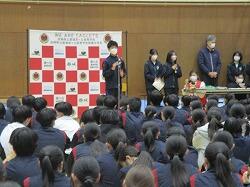 12月19日(金)午後、1年・大峯果林さんが、鹿児島県曽於市長と面会し、47回全日本水の作文コンクールで内閣総理大臣賞を受賞したことを報告しました。大峯さんの作文は、お父様が曽於市役所で水道に携わる仕事をされてきて、そのことを題材として書かれたもので、曽於市での水に関わる出来事が多く登場します。面会では曽於市長からお祝いの言葉をいただきました。ありがとうございました。
