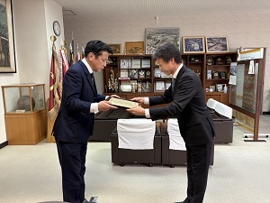 都城税務署の寺本署長が来校され、感謝状をいただきました。