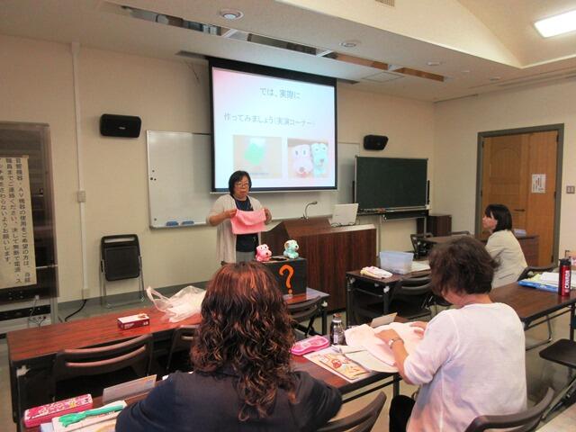 りをやって見せてくださったり、タオルを使った「犬のマスコット」の作り方を