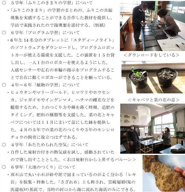 プログラム学習や4月に使う植物、熱気球、レキ岩等について、支援しました。