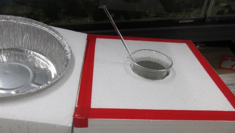 60度を保ち、ミョウバン20杯をとかす器具 投稿日時 : 2024/02/08 管理室 左のアルミ皿で湯せんしながらビーカーをコンロで温め30度、60度と温度を変化させる。(50mlの水) 右は発泡スチロールでアルミ皿全体をおおい、ミョウバンをとかす器具、60度が8分以上保たれた。 再加熱が必要な場合もアルミ皿をコンロで熱すれば、60度で20杯とかす実験が可能。器具貸し出します。 Tweet