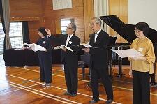 10月30日木曜日、音楽鑑賞会が体育館で行われました。津野田音楽院から5名の講師が来校され、体育館に素敵なハーモニーを響かせました。生徒は、日頃聞くことのできない上質な歌声に聴き入っていました。