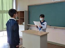 12月3日、生徒会活動の11月の取組として実施した多読賞の表彰と、11月30日に行われたバドミントンの大会で2位になった表彰をしました。その後、来週のすこやか週間に向けて、養護教諭が保健指導を行いました。
