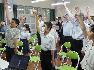 9月17日(水)、第49回延岡地区中学校秋季体育大会の選手激励会が行われました。参加生徒が決意表明をした後に、校長先生の話がありました。最後に選手宣誓をして会が終わりました。県大会の出場権を獲得できるように、残された練習時間を大切に過ごし、当日は力を出し切ってほしいと思います。