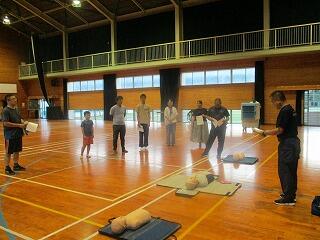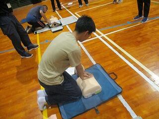 〇浦城小学校・熊野江小学校の職員と合同で、延岡市消防署の方を講師に招き、救急救命法の職員研修を行いました。学校教育内で想定される事故に対して、緊急時に必要な手当ができるように、救命手当や心肺蘇生法、AEDの使用法等について学びました。
