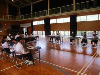 〇2学期の始業式を行いました。生徒代表の3名は、「生活リズムを整える」「責任をもって計画的に学習や行事に取り組む」「受験生としての意識を高める」などを発表してくれました。生徒全員が事故等無く、元気に登校できたことは大変素晴らしいことだと思います。