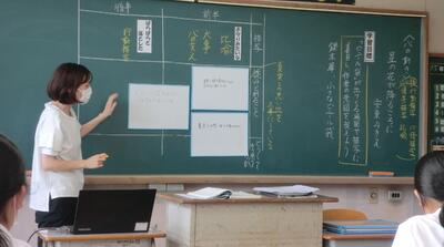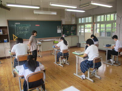 〇本校では、「学力向上」の一環として、研究授業を行っています。国語科では、「星の花が降るころに」を題材に、「場面の描写から読みとれることを考え、心情の変化に気づき、作者の意図、場面や人物の状況や描写を結びつけた読み方」をねらいに行いました。生徒は緊張することなく、良く発表を行い根拠を持って説明するなど、とても素晴らしい学習状況でした。