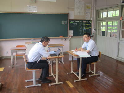 〇北部教育事務所・延岡市教育委員・延岡市教育委員会の方々による学校訪問が行われました。学校経営説明の後、各先生の授業参観し、その後、先生方一人一人にフィードバック(授業改善の方策や、学力向上へのアドバイス等)がありました。この訪問を受け、さらによりよい学校教育に努めていきたいと思います。
