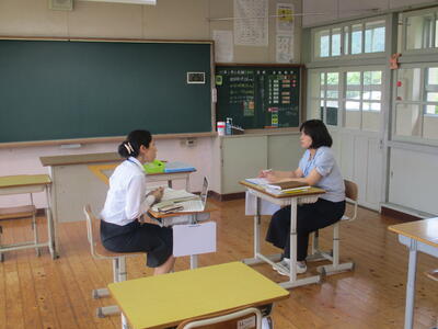 〇7月11日~12日に実施する職場体験学習の事前指導を行いました。職場体験学習のしおりを見ながら、体験時間・持参物・気をつけること等を確認しました。確認後、実際に事業所に打合せの電話をしました。緊張しながらの電話でしたが、臨機応変に対応している姿は感心しました。2日間の体験ですが、働くことの意味や自身の社会生活でのマナーや礼儀など多くを学んで欲しいと思います。