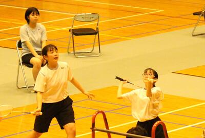 〇7月15日(土)16日(日)に宮崎市総合体育館にて、第74回宮崎県中学校総合体育大会・バドミントン競技が行われました。本校から、延岡地区代表として、男女ダブルスが出場しました。選手推戴式では、これまでの努力と地区を代表する意気込みが感じられました。