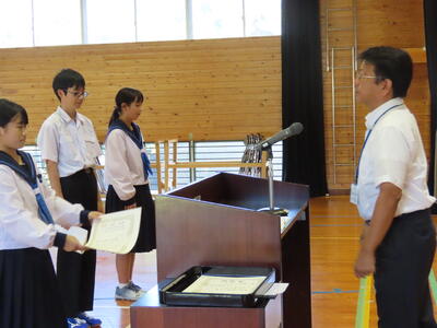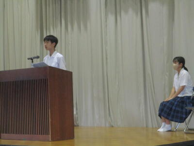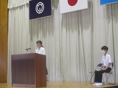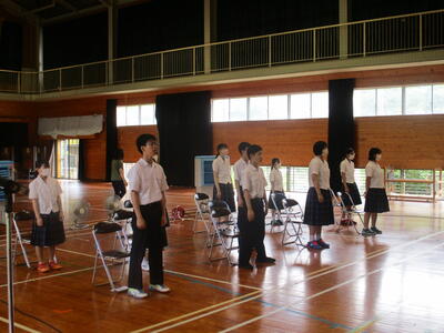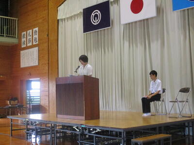 〇1学期の終業式です。各学年発表の「1学期の反省と2学期への抱負」では、自分をしっかり振り返り、次の目標とそれを達成する方策が具体的に述べられ、聞く人を惹きつける発表でした。校内で取り組んでいる「スピーチトレーニング」の成果が表れてきているように思いました。生徒の伴奏による校歌も大きな声で元気よく歌うことができました。校歌は学校を愛する現れの一つだと思いました。