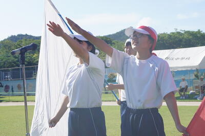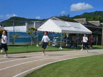 〇多くの方に支えられていることに感謝しながら、天候にも恵まれ、運動会を実施する事ができました。地域の方々もたくさん参加していただき、改めて、「地域とともにある」学校づくりを実感いたしました。児童生徒は一生懸命競技に取り組みました。赤団のダブル優勝(競技・応援)でしたが、白団も素晴らしかったです。地域の方の参加競技も大変盛り上がり、思い出に残る一日となりました。