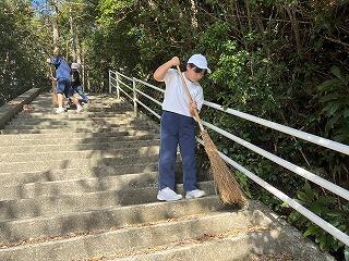 〇小・中合同で、熊野江神社の清掃活動を行いました。神社までの道のりは、ゴミを拾いながら移動し、神社清掃では、小学生と中学生が一緒に清掃活動をしました。清掃後は「やっこ草」の観察も行いました。歴史ある神社と延岡市の天然記念物であるやっこ草は、この地区の宝物であると同時に、地区の素晴らしさを物語っているようでした。