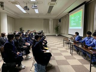 〇講師派遣事業として、旭化成動力部を訪問しました。普段は見ることのできない工場内の見学や、事業の説明がありました。クイズ形式での学習もあり、生徒は楽しみながら学習することができました。旭化成の地球温暖化対策について生徒たちは感動したようでした。地元企業の素晴らしさに触れ、ふるさと延岡を誇る気持ちが高まったようでした。