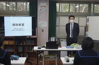 〇重要生息地に指定された「熊野江河口海浜域」について学ぶ「希少生物観測フィールドワーク」を実施しました。宮崎大学名誉教授三浦知之先生を講師に招き、生物や自然との関わりなどの講話を行ってもらいました。その後、熊野江川河口に移動して観測会を行いました。生徒は、身近な地域に貴重な生物が生息することを実感し、より南浦の自然の素晴らしさを感じたようでした。お礼に三浦先生を始め、来校された関係者の方々に、本校生徒作成のストラップをお渡しました。