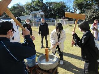 〇熊野江小学校・南浦中学校PTA主催による「卒業を祝う餅つき・餅まき」を行いました。前日より餅米の準備や、当日大勢の保護者で準備をしていただきました。ありがとうございました。児童・生徒は、これまでの感謝の気持ちを込めて、餅つきや、ついた餅を形良く丸めていました。餅まきでは、卒業生がこれまでの感謝の気持ちや、今後の目標など全員が発表し、地域の皆様も参加するなか、餅や準備されたお菓子を楽しそうにまきました。児童・生徒、保護者、地域の方に思い出に残る行事になったと思います。