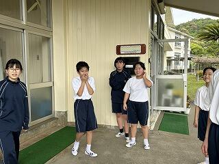 〇第22回トム・ソーヤ企画コンテスト「優秀賞」の受賞を受け、全校で遠足を行いました。自然に触れ、食を感じ、スポーツに親しみ、3年生に感謝の気持ちを伝える内容でした。生徒は、とても楽しそうで、思い出に残る遠足でした。また、このすばらしい南浦地区に感謝した様子でした。