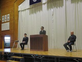 〇全校集会で、延岡地区薬物乱用防止啓発ポスターコンクール、「優秀賞」「延岡地区薬業団体連絡協議会長賞」を受賞した2名の生徒の表彰を行いました。受賞した生徒は自信につながったと思います。その後、校長先生から横浜市で行われた第22回トム・ソーヤ企画コンテスト表彰式(優秀賞)の様子をスライドを使って紹介されました。生徒は会場やその周辺の様子に驚いていました。最後に、「みなさんが、これからも南浦地区を愛し、大人になってもふるさとを忘れず、地域に貢献してくれることを切に願っています」と話され、「豊かなふるさと南浦自然物語」でまとめられました。生徒・職員も語り継ぐことの大切さを感じたお話でした。