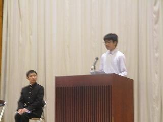 〇2年生「立志の集い」を行いました。この日のために「決意表明作文」「保護者へのプレゼント」「保護者への手紙」などを準備してきました。3名の発表はとても素晴らしく、生徒からの贈り物もあわせて保護者の方は感動していました。3年生代表のから、「辛いときは周りの力を借り協力してください。あこがれの人を持ち、その人に近づけるよう努力をしてください。きっとよい未来が待っています」と、励ましのことばも伝えられ、とても意義のある集いでした。