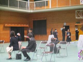 〇在校生が心を込めて設営した会場で、多くの来賓がご臨席の中、第10回卒業証書授与式を行いました。校長先生から卒業証書を授与される卒業生の表情はとても緊張しているかのように見えました。在校生代表送辞は、卒業生へ思いがあふれ、卒業生答辞では、参加者が感動する内容でした。卒業生退場で、在校生から花束をもらう姿は感動的でした。学級活動では3年間の思いがあふれる涙が止まらないものでした。巣立つ卒業生に感謝しました。