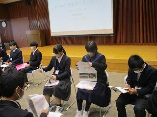 〇令和5年度のべおか未来ワークショップ(延岡市中学校生徒会サミット)が市内中学校生徒会代表が集まり開催されました。本校の生徒会執行部3名も参加し、午前中は班別に各校の取り組み紹介・質疑が行われ、その後先進校の代表として本校の取り組みを発表しました。3名の生徒は、他校の生徒にしっかりと意見を述べ、全体発表では具体的でわかりやすい発表でした。午後は、高校の取り組みの紹介・グループワーク・市長による講評がありました。この会議をとおして延岡市・南浦地区の明るい未来を拓く方策を話し合うことができたと思います。