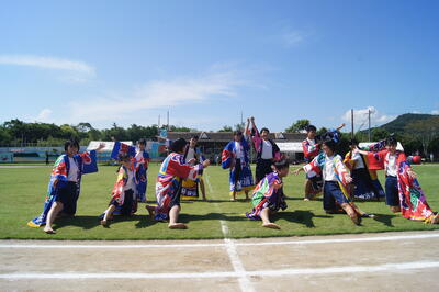 〇多くの方に支えられていることに感謝しながら、天候にも恵まれ、運動会を実施する事ができました。地域の方々もたくさん参加していただき、改めて、「地域とともにある」学校づくりを実感いたしました。児童生徒は一生懸命競技に取り組みました。赤団のダブル優勝(競技・応援)でしたが、白団も素晴らしかったです。地域の方の参加競技も大変盛り上がり、思い出に残る一日となりました。